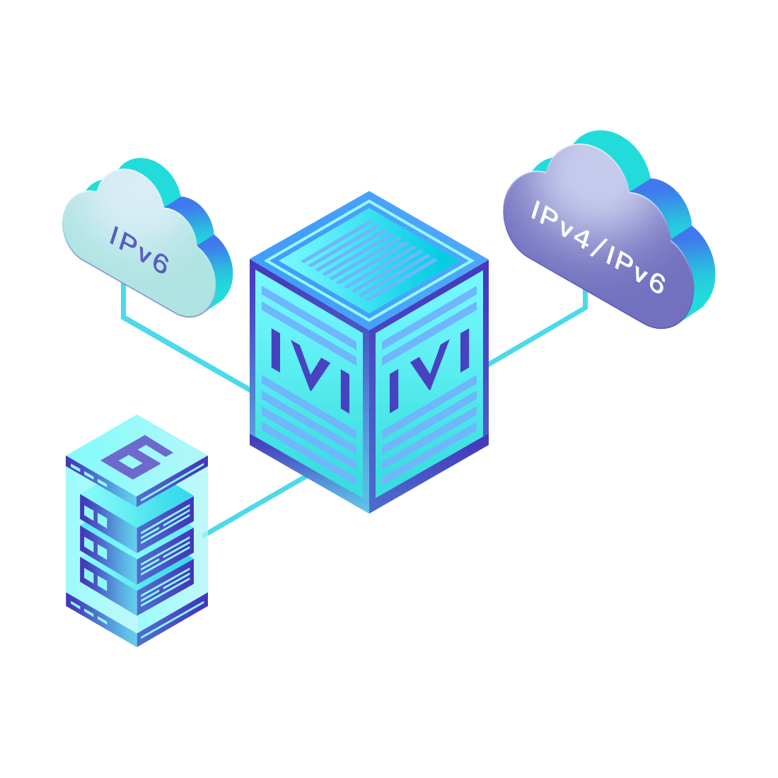 對(duì)正在進(jìn)行IPv6整體升級(jí)規(guī)劃的運(yùn)營(yíng)商,應(yīng)用IPv6升級(jí)方案2.5,通過(guò)IVI無(wú)狀態(tài)翻譯技術(shù)和純IPv6接入網(wǎng)絡(luò),為雙棧客戶端和雙棧服務(wù)器提供連通服務(wù)。